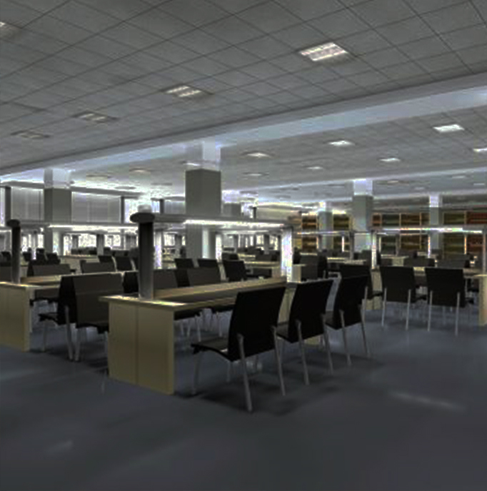控制藏書區(qū)和閱覽區(qū)。藏書區(qū)采用多功能傳感器控制和定時(shí)控制。當(dāng)藏書區(qū)開放時(shí)自動(dòng)開啟1/3隔燈照明,保證基本照度。有人進(jìn)入時(shí)多功能傳感器自動(dòng)開啟該區(qū)域的燈光,方便取閱。取閱者離開后延時(shí)關(guān)閉該區(qū)域燈光以節(jié)約電能。藏書區(qū)停止使用時(shí)延時(shí)關(guān)燈;閱覽室則采用照度控制和定時(shí)控制。照度傳感器根據(jù)室外光照自動(dòng)控制窗邊燈光和電動(dòng)窗簾,保證合適的閱讀照度,同時(shí)節(jié)約能源。閱覽室停止使用時(shí)延時(shí)關(guān)燈。