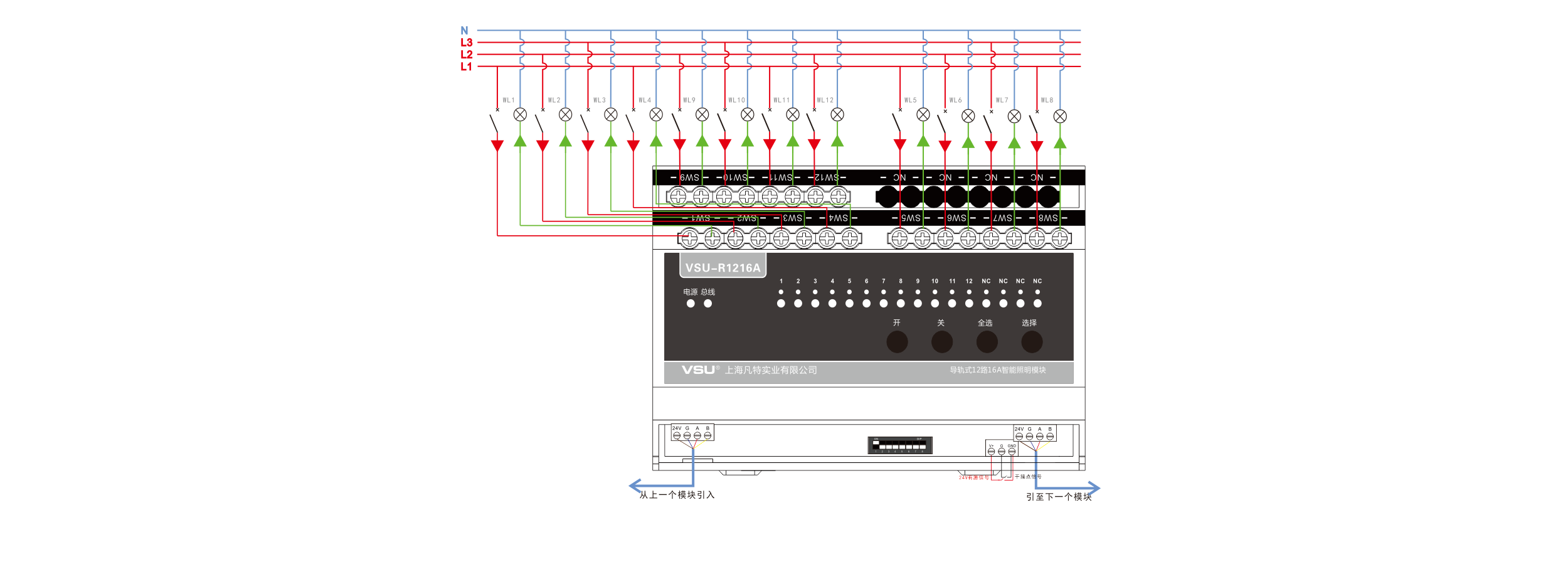 本產(chǎn)品為導(dǎo)軌式安裝,含12路智能繼電器,每回路可獨(dú)立控制3520W燈具的開(kāi)關(guān),帶應(yīng)急按鍵,LED燈實(shí)時(shí)指示各個(gè)回路開(kāi)關(guān)狀態(tài),可設(shè)置為互鎖控制6組窗簾開(kāi)合;