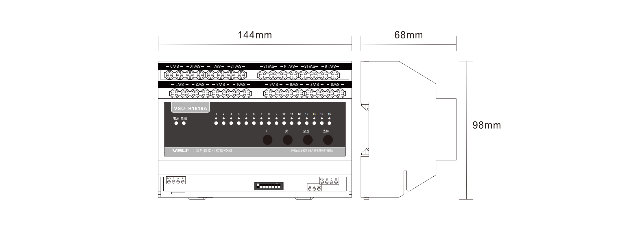 本產(chǎn)品為導(dǎo)軌式安裝,含16路智能繼電器,每回路可獨(dú)立控制3520W燈具的開關(guān),帶應(yīng)急按鍵,LED燈實(shí)時(shí)指示各個(gè)回路開關(guān)狀態(tài),可設(shè)置為互鎖控制8組窗簾開合; |