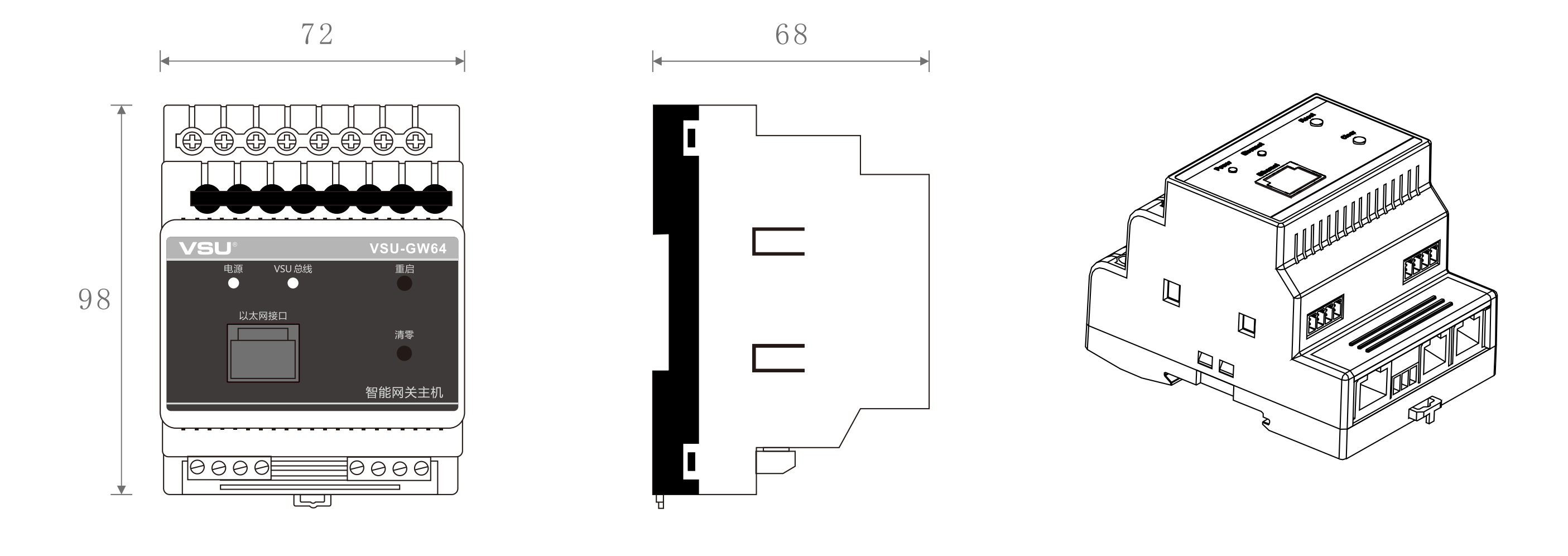 8,指示燈:1×電源,1×VSU-Net信號指示;